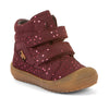 Introduce Ollie to our Froddo collection. Ollie wool tex comes in this beautiful Bordeaux colour way and is fully waterproof, making them perfect for puddle jumping and winter adventures. Lined with cosy wool, ensuring your little one's feet stay nice and snug.